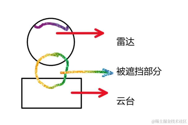 最近在使用Rplidar进行AMCL导航的时候,发现一个问题。由于雷达是固定在车的前面,雷达后面一部分位置被云台给遮挡住了。如图所示: