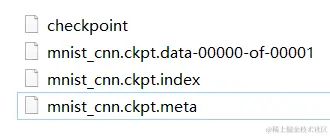 这样就可以输出预测的值啦。虽然说,手动重写网络结构比较简单直接(毕竟可以直接复制训练代码),但是这样未免显得不太智能。事实上,TensorFlow在训练时,已经给我们,保存了所有变量和网络结构。我们先来看一下训练时保存的文件:
