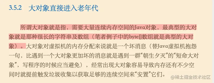 书本,也没说明,多大的对象才是大对象,比较抽象。