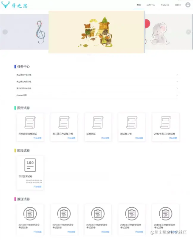 (2)首页:任务中心、固定试卷、时段试卷、可以能做的一部分试卷