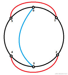 如图8,6个结点的情况,0<->3,1<->5,2<->4 连接的情况如下。