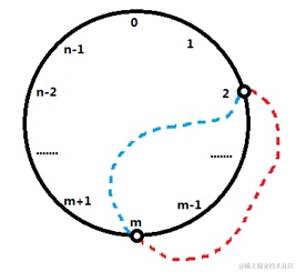 题意:一个圆上有n(n <= 1000)个结点,分别按顺序编号0,1,2…n-1,从圆上任意找两个点串起来,可以选择从圆里穿过(图7中蓝色虚线所示),也可以选择从圆外穿过(图7中红色虚线所示),每个结点只允许连一次。给定m对连接,问是否存在这样一种情况,所得所有连接之间互不相交。
