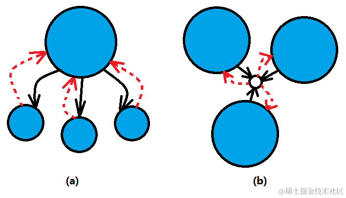 1.如果两个点连接的是同一个中转点,那么他们的距离为各自到中转点的距离之和,如图9-(3)所示;