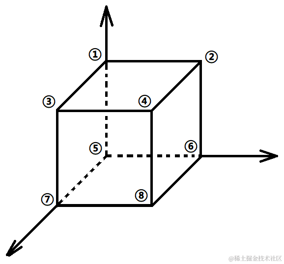 如图所示,先将所有顶点编号,那么可以得出如果将某个点固定在原点,则可以绕着(1,1,1)这条轴旋转0度、120度、240度三种情况,所以所有旋转数就是8×3=24。那么我们写好一个旋转函数,其它的固定原点的直接手写模拟8种初始情况,然后分别用旋转函数生成其他16种情况即可。