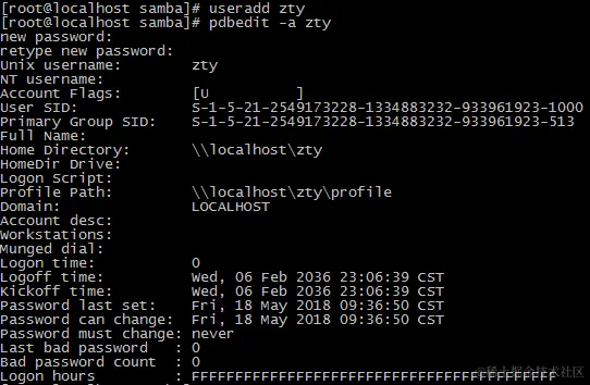 [root@localhost ~]# pdbedit -a zty