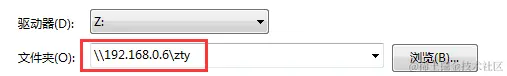 【计算机(右键)】=> 【映射网络驱动器】=> 【文件夹】填上 \\IP\zty就可以连接上了。