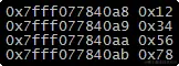 数据的高位字节存储在地址的高端;低位字节存储在地址的低端。如图所示,值为 0x12345678 的四字节整数在小端序的主机上的内存排布。