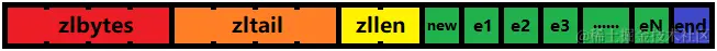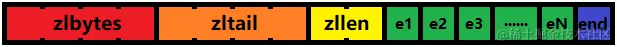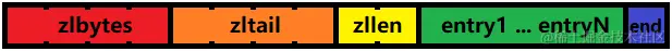 其中zlbytes、zltail、zllen 是 压缩列表头( ziplist header ),entry1 到 entryN 是列表的结点部分,zlen 是结尾标记。