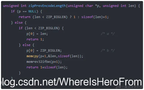 a、如果长度小于 254 (定义在 ZIP_BIGLEN 中),那么它用一个1个字节(8位无符号整数)来存储长度;
