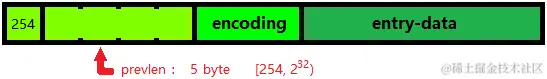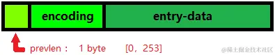 prevlen 表示前一个结点的长度,在内存中的存储实现如下:
