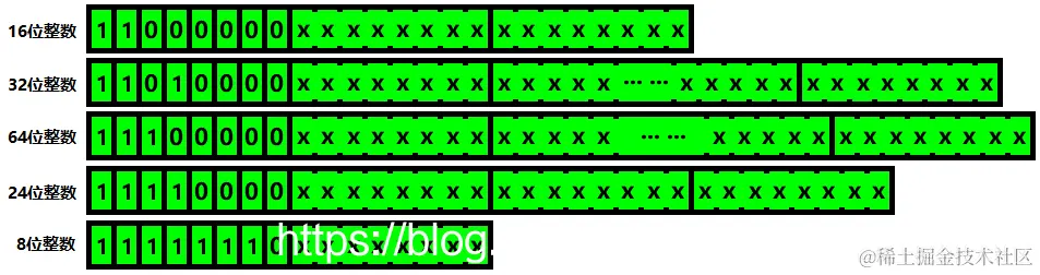 c、ZIP_INT_64B 第1个字节为 |11100000|,总共占用 9 个字节。后 8 字节表示 64位 整数;