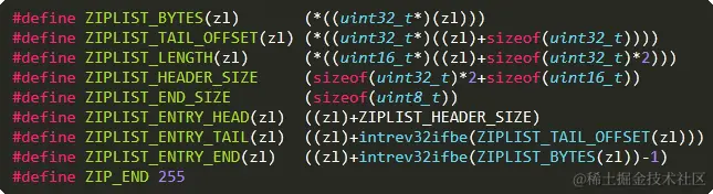 ZIPLIST_ENTRY_HEAD 和 ZIPLIST_ENTRY_TAIL 分别代表压缩列表的 首结点 和 尾结点 的首地址。intrev32ifbe 是前一篇文章提到的字节序转换。