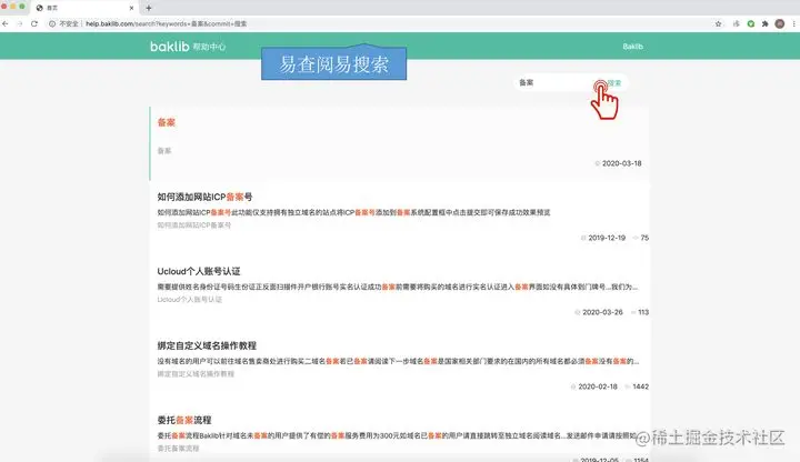 简单有效的搜索是客服知识库工具的关键,Baklib除了提供关键词高亮展示外,还提供了全局搜索的功能(类似于百度的搜索机制)比按照标题搜索要好很多