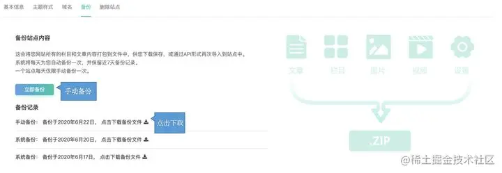 使用别人的产品最担心的就是数据安全的问题,对于企业来说就更为重要了,能将数据掌握在自己的手里很重要。除了每日的系统自动备份外,Baklib还支持数据的手动备份,数据可以下载到本地哦!
