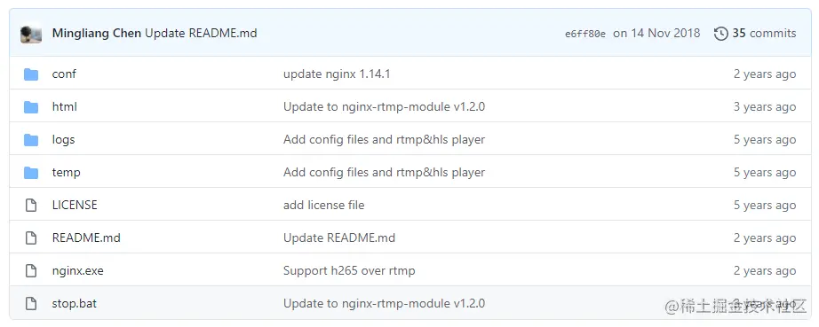 nginx-rtmp-win32 其实是对 nginx-rtmp-module 的封装,但是 nginx-rtmp-module 在 Windows10 上面使用 过于复杂,nginx-rtmp-win32 提供了一个已经嵌入 rtmp 模块的 nginx 版本,设置 nginx 的 conf 之后,启动 nginx 即可使用。