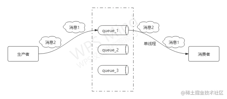 - 一个 queue 对应一个 consumer,但是 consumer 多线程消费;