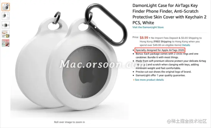 所谓无利不起早,目前已经有许多配件厂商早在布局新产品线,下面这张图便是厂商为AirTag 2020量身打造的保护壳。