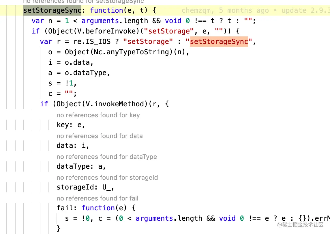 看出 data 里面的数据就是 Storage 存储的 Date.now()时间, wx.setStorageSync wx.getStorageSync 在源码对应的地方。