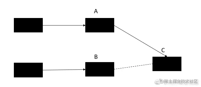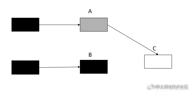 但这里会存在一个问题,如果在上图的情况下,BC 的引用断掉,而 AC 的引用被建立,如下图: