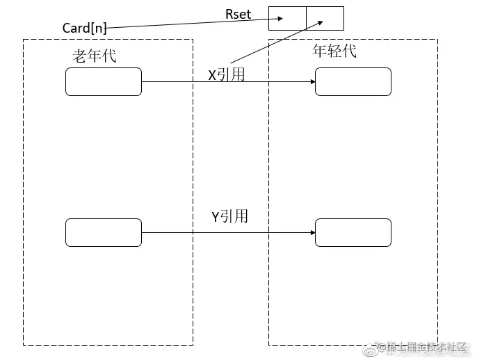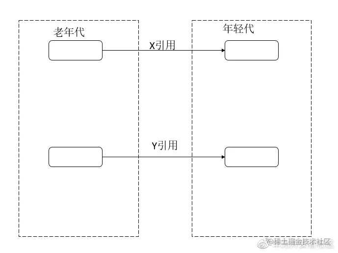 如上图,X 引用和 Y 引用都是属于跨代引用。