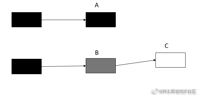 上图中,A 就是黑色节点,B 为灰色,因为 B 的子节点 C 未被扫描,C 则是白色节点。