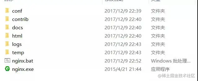 nignx是绿色版本的,只要到官网下载解压既可启动,解压目录图如下所示:
