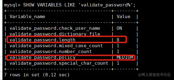 SHOW VARIABLES LIKE 'validate_password%';