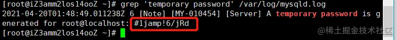 [root@localhost ~]``# grep 'temporary password' /var/log/mysqld.log