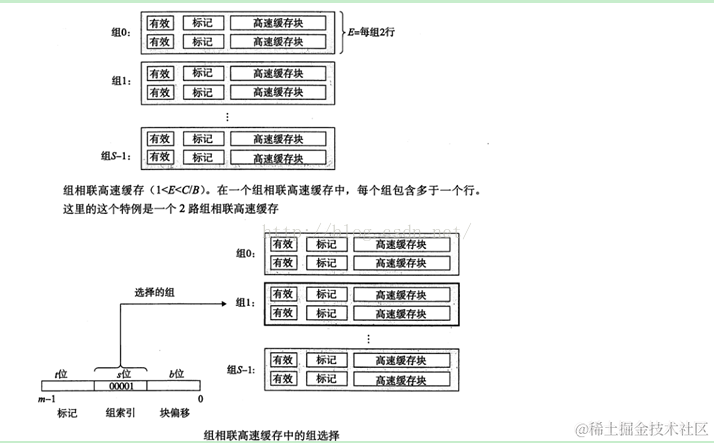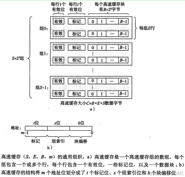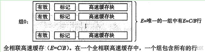 E>1 但是 E< E/B叫做E路组相联高速缓存。当E=C/B的时候,就是全相联高速缓存了。