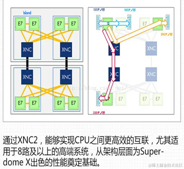 大多数X86高端服务器用的是INTEL官方的CPU互联架构,效率不高。