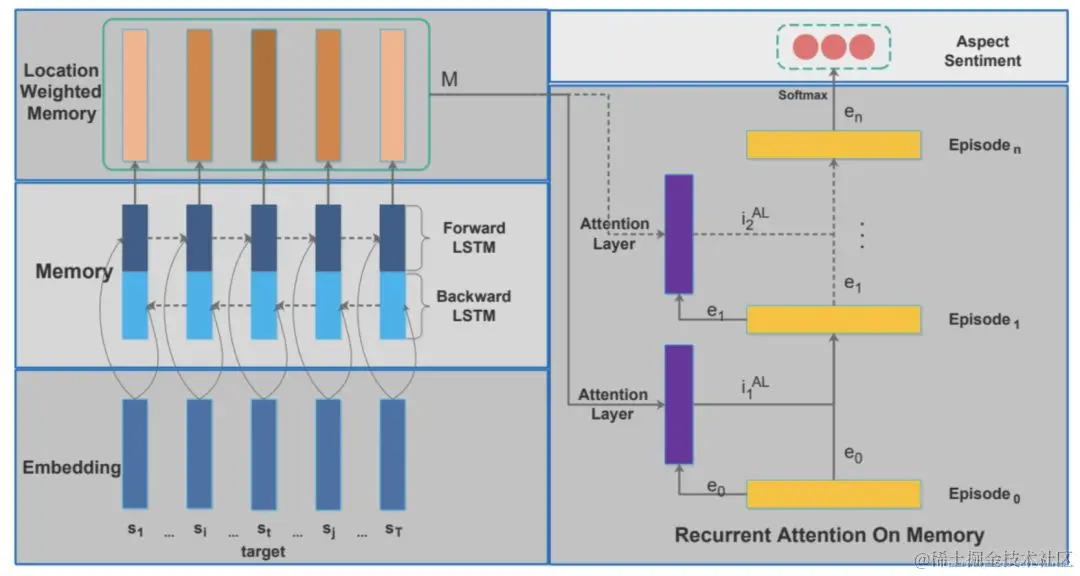 短语粒度:Chen等人(2017) 分别使用位置权重记忆和层叠attention的复合机制,建模target词和文本间的相互交互关系,以解决短语级情感分类问题;\