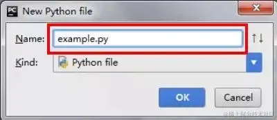 在 Name 一栏输入文件名即可,记得添加 .py 后缀,点击 OK 之后就可以开始写下