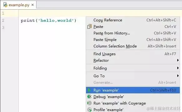 对于同一个脚本,第一次运行使用 右键 → Run example ,之后可以直接点击右上角或者左下角的 绿三角 。如下图: