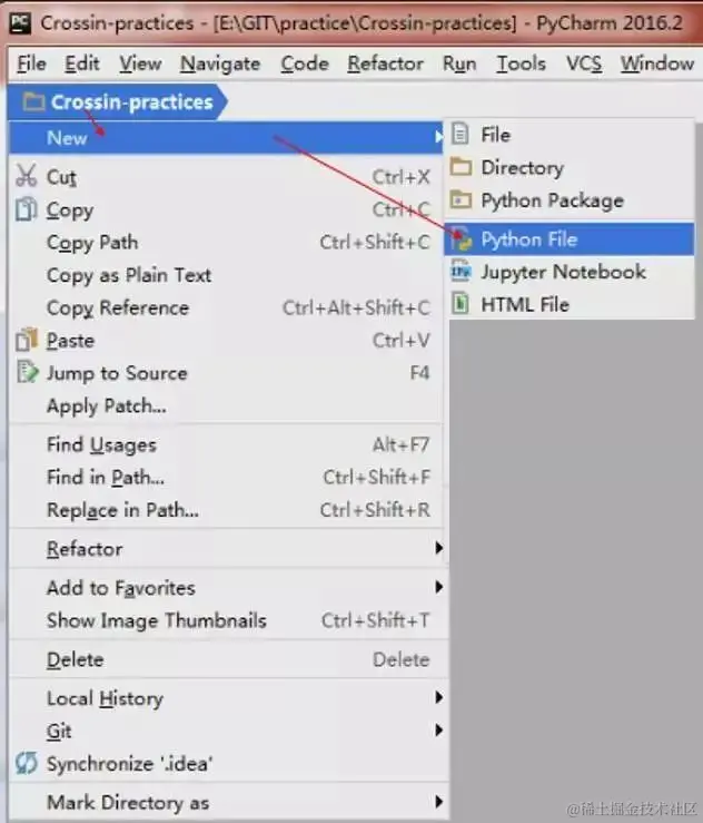 这里我们以刚刚创建的 Crossin-practices 文件夹为例,依次点击