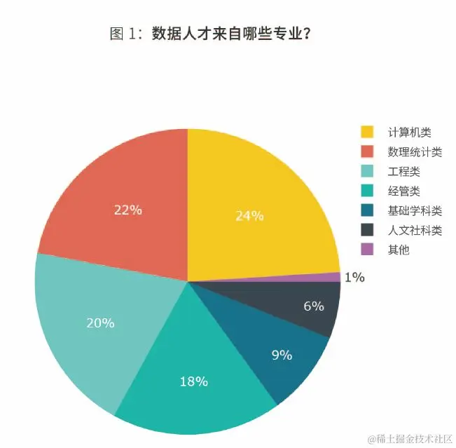 数据人才的专业背景呈现出多元化特点,并不仅仅局限于某一专门学科,可以说数据处理技术已经渗透到各个专业领域。然而,在数据人才多元化的专业背景中,依然可以看出计算机类、数理统计及工程类学科占比总计超过60% 。足以看出,偏理工学科背景的人才,具备良好的数理统计基础、逻辑思维与编程能力。