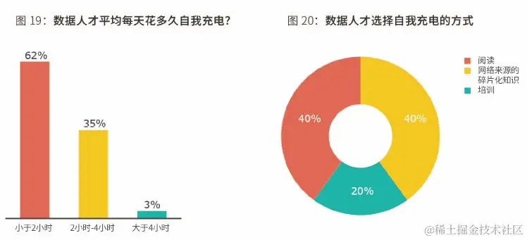 这里有一项很有意思的调查,是调查数据工作者每天的学习时间,经过对比发现,头部数据人才之所以是头部人才,大概率是因为他们在提升自我学习上花了更多的时间。