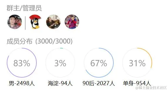 一共7个qq群,累计人数约16300人,其中硕士及以上学历占一半。\