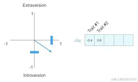 你可能不知道每个维度代表什么,但仍然可以从一个人的个性的向量表示中获得了很多有用的信息。