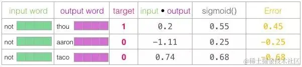 这是“机器学习”的“学习”部分。现在,我们可以利用这个错误分数调整not,thou,aaron和taco的嵌入,使下一次我们做出这一计算,结果会更接近目标分数。
