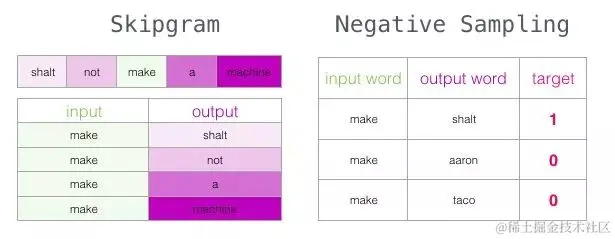 为了解决这个问题,我们需要在数据集中引入负样本 - 不是邻居的单词样本。我们的模型需要为这些样本返回0。现在这是一个挑战,模型必须努力解决,而且速度还要快。