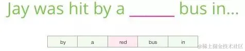我在这里给你的背景是空格之前的五个字(以及之前提到的“bus”)。我相信大多数人都会猜到空格里的这个词会是“bus”。但是,如果我再给你一条信息:空格之后的一句话,那会改变你的答案吗?