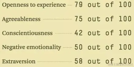 图:测试结果示例。它可以真正告诉你很多关于你自己的事情,并且在学术、个人和职业成功方面都具有预测能力。