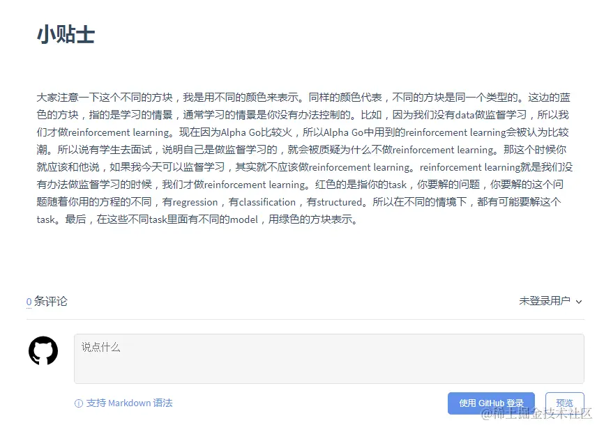 目录中每一节最后都设置了交流互动区供大家总结学习内容、提出自己的疑问和广大学习者互动,使用GitHub登录就好啦,是不是交流起来就方便了许多。