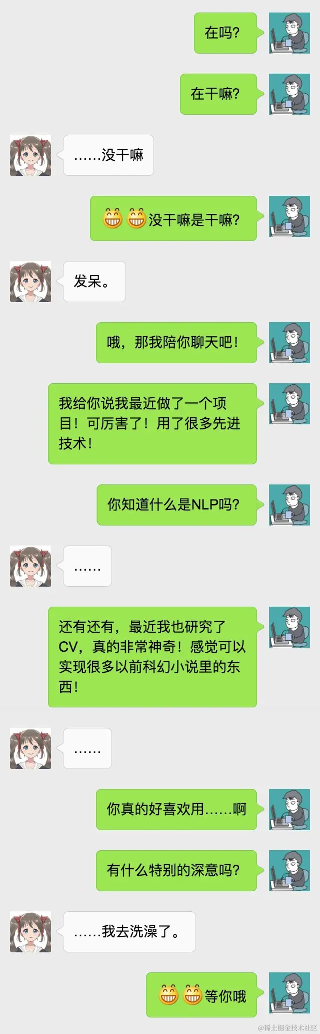 看下典型的程序员聊天记录: