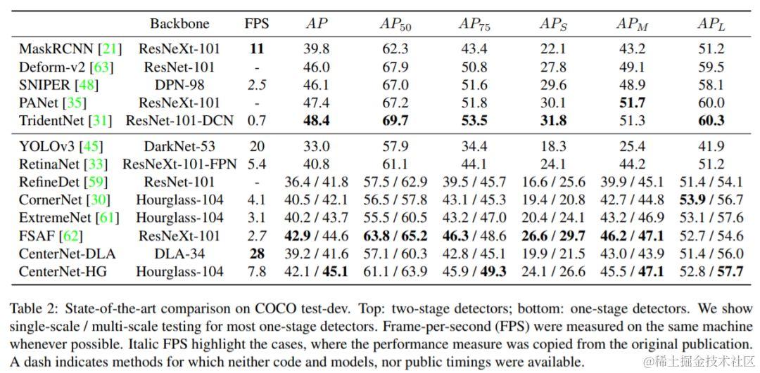 目前的目标检测论文主要分为两大类:One-stage 和 Two-stage(还有部分是 Multi-stage),其中 One-stage 相对于 Two-stage 在性能方面的表现就是 FPS 会高一点,即速度相对要快一点。这个特点在这篇文章:大盘点 | 性能最强的目标检测算法 就已经体现了,里面大多论文并不会介绍速度的对比实验。\