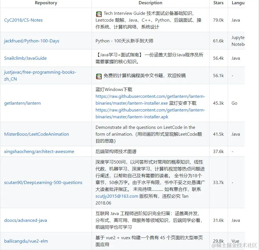 种类很全面,基本涵盖了所有编程语言的 Top N 热门项目!\
