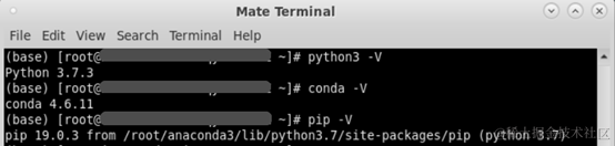 另外,Anaconda安装完成后会创建一个叫base的默认环境,Linux的终端界面前部出现(base)字样,如不介意,可以跳过这个步骤: