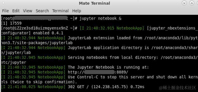 至此,所有设置完毕!在服务器端运行jupyter notebook,进程在后台运行。