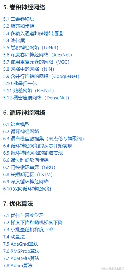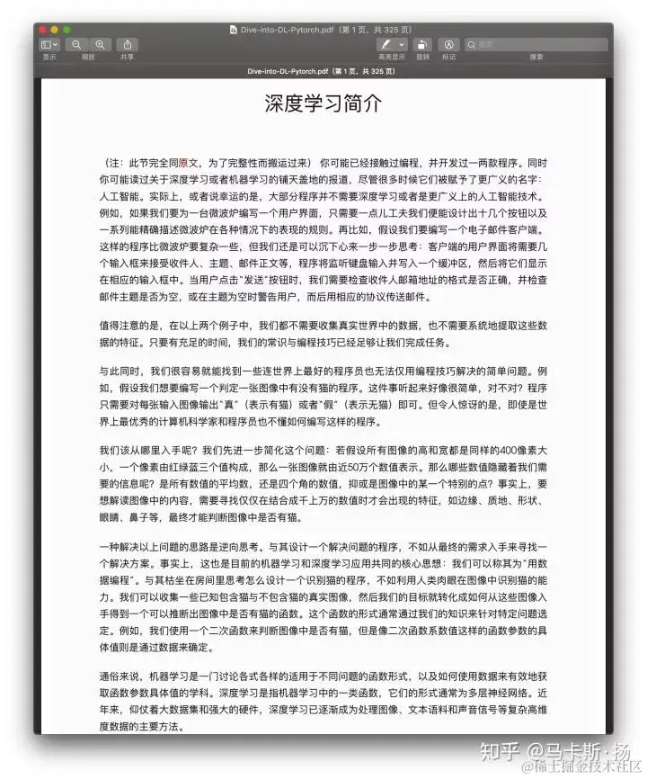 然而,源项目由于写的是 Markdown ,公式和代码显示不太方便阅读。最近,我发现一位中国海洋大学大三学生将上面 PyTorch 版本的《动手深度学习》编译成完整的 PDF 文件。方便大家阅读以及解决 GitHub 上公式显示不全的问题。