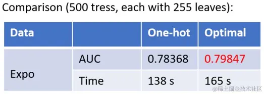 我们可以看到这种处理类别特征的方式使得 AUC 提高了 1.5 个点,且时间仅仅多了 20%。